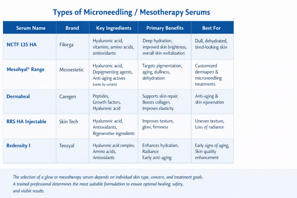 In professional microneedling treatments, the choice of glow serum is just as important as the technique itself. Some brands are globally recognized for their safety, clinical backing, and proven results when used with derma pen treatments.